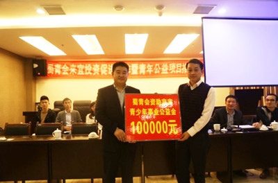 下午,大家参观考察了宜宾临港国家级经济技术开发区,并出席“蜀青会来宜投资促进合作暨青年公益项目推荐座谈会”。会议由宜宾市青联秘书长马超主持,共青团宜宾市委书记、市青联主席刘毅出席并讲话;宜宾市投资促进局副局长刘东介绍了宜宾市招商投资环境;宜宾市投资集团总裁左成业介绍了宜宾的城市建设情况和发展目标;共青团宜宾市委副书记刘薪介绍了宜宾青年公益项目;蜀青会会长周红介绍了蜀青会的组建、性质、使命和会员在宜投资项目;副会长唐发明代表蜀青会就宜宾投资环境、双方项目对接、支持宜宾团市委发展公益事业等方面接受了宜宾电视台采访;最后,周红会长代表红世控股及蜀青会向团市委捐赠了10万元青少年事业公益金并合影留念。