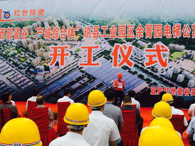 2014年9月1日上午,宜宾珙县余箐工业园区电梯公寓施工现场内,彩旗飘扬、礼炮轰鸣。由四川红世投资管理有限公司投资的西部瓷谷·产城综合体项目电梯公寓二期工程开工仪式隆重举行。余箐工业园区管委会书记朱建军、四川红世控股董事长周红、珙县工商联主席宴庭松、四川兴旺建设项目管理有限公司总监唐志文、宜宾市商业银行珙县支行行长周力、农业发展银行珙县支行行徐刚、中国工商银行珙县支行行长曾余忠、中国人保财险公司罗世彬、安徽路网集团副总裁宁彪、四川省经纬建筑有限公司董事长王伟、宜宾红世瓷谷实业有限公司执行总经理魏宇、常务副总陶承明等领导出席了开工仪式。