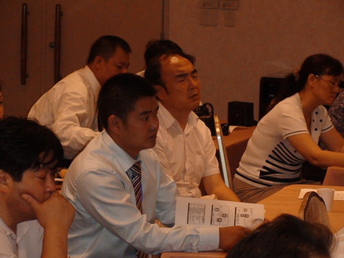 公司董事长周红认真听取老师的讲解