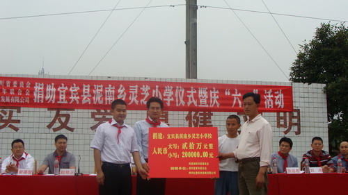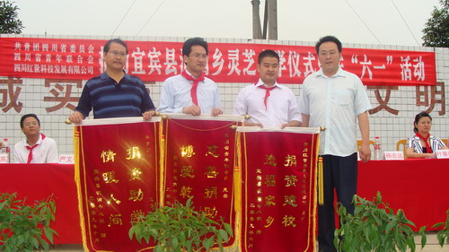 在我与赵修正部长的接触中,也能感受到宜宾各级党委政府对教育事业的重视。同时,也了解到他们在推进教育事业过程中的一些实际困难。作为一名宜宾籍四川省青联委员,我也很想为家乡的教育事业尽上一份绵薄之力。今天,我代表四川红世公司与团省委、省青联,向灵芝村小学捐资20万元,对学校环境进行改造,愿同学们今后能在一个比较舒适的环境中快乐学习、成长。我们带来的捐款虽然不多,却饱含着团省委、省青联对我们家乡的关心,及四川红世全体员工深深的情谊。