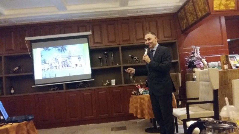 布达佩斯工商联中国代表、匈牙利外交部、原匈牙利驻重庆总领事馆商务领事福龙先生介绍到, 匈牙利首都:布达佩斯,面积525平方公里,人口1,885,000。主要民族为匈牙利族,约占98%。少数民族有斯洛伐克、罗马尼亚、克罗地亚、塞尔维亚、斯洛文尼亚、德意志和吉卜赛等族。官方语言为匈牙利语。居民主要信奉天主教(66.2%)和基督教(17.9%)。分别就匈牙利国债移民、酒庄、辣椒磨坊、土壤改良剂、保温材料、堆肥等投资项目作了分享。