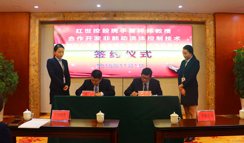 2016年11月1日下午,“红世控股携手曾祥炜教授暨并购四川孚硌流体控制系统技术有限责任公司签约仪式” 在环球中心红世控股多功能会议厅举行。红世控股董事长周红等公司领导,并购方四川孚硌流体控制系统技术有限责任公司法人曾祥炜等公司领导出席签字仪式,双方共同见证了这一里程碑式的开端。