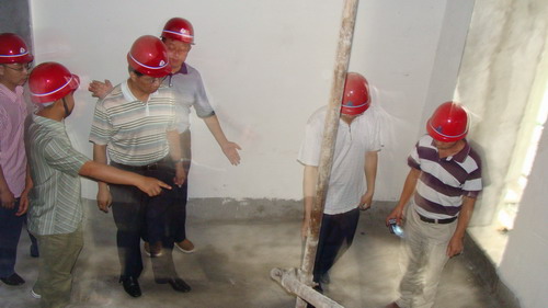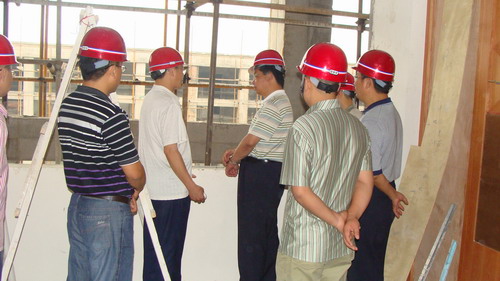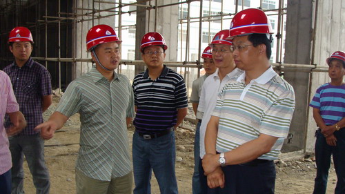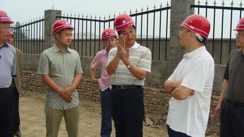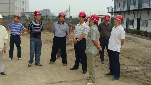 6月11日下午,崇州市委副书记、工业区党工委书记、管委会主任肖压西、崇州市政协副主席、管委会副主任黄志文,崇州工业区管委会副主任、纪工委书记俞冬梅等一行人,在公司董事长周红、总经理谢德智、副总张远启及各部门经理的陪同下,不顾工地高低不平、尘土飞扬、机声轰鸣,视察了我公司“国家家具、鞋类产品质量监督检验中心”工地建设现状,现场督查施工进度,认真了解施工中存在的问题及加快工程进度急需解决的问题,并对工地的现场环境、文明施工、安全防范等,给予了充分肯定。 在详细听取了公司领导关于项目建设情况的汇报后,肖压西书记对项目建设提出明确要求:一是要确保施工进度,工期不能延迟;二是要注意施工安全,做到健康、文明施工;三是要确保施工质量,工程质量要经得起历史的检验。