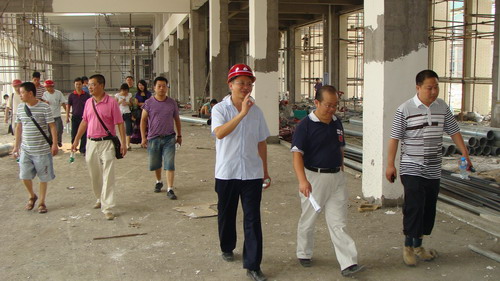 7月13日下午,成都市质检院领导在我公司相关部门负责人的陪同下,再次来到 “双检中心”项目建设工地,现场检查指导工作。视察中,张院长就大楼的布线及排水沟位置等问题提出了建议。我公司有关负责人认真听取了意见,并组织召开了会议。会上总结了质检院领导的建议,并就相关部分展开了讨论。