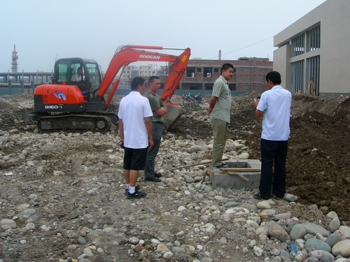 29日下午,董事长周红、总经理谢德智等一行来到“双检中心”工地了解项目进度,检查各项施工情况。在机器轰鸣的建设工地上,项目部负责人向董事长汇报了情况,并亲自向施工人员询问了在工作中遇到的具体问题。