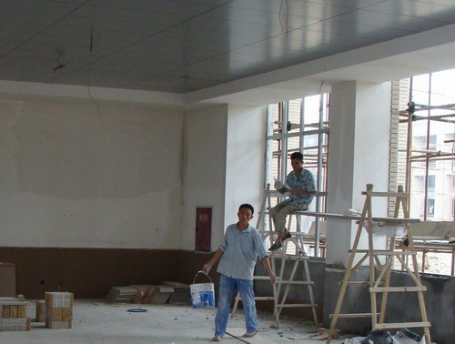 大楼内部墙体装修有条不紊进行