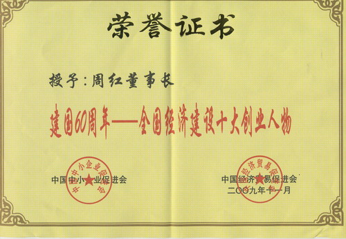 日前,从 “第三届中国民营经济论坛暨建国60周年中国优秀创新企业家颁奖盛典”上传来喜讯,我公司董事长周红以其强烈事业心和社会责任感,敢闯敢拼,勇于开拓进取的精神入选 “建国60周年——全国经济建设十大创业人物”。