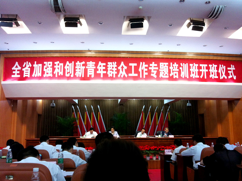 为进一步学习贯彻落实四川省第十次党代会重要精神,进一步提升共青团组织为党做好新形势下青年群众工作的能力和水平,提高全省各级党委和共青团组织服务青年成长发展工作实效。2012年6月4日。四川全省加强和创新青年群众工作专题培训班在蓉开班,由团省委联合四川省委组织部、省委党校共同举办的四川全省加强和创新青年群众工作专题培训班在省委党校正式开班。
