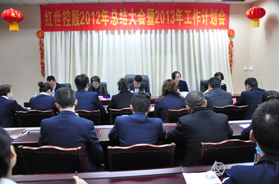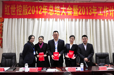 2012年2月2日,“红世控股2012年总结大会暨2013年工作计划会”如期举行,参加本次会议的领导有公司董事长周红先生,红世集团战略顾问汉豪资本高级合伙人李鉴鹏先生,红世文化传播有限公司总经理兼董事长助理伍玥霖女士,投融资部经理范涛先生,财务部经理潘洪英女士。会议由红世文化传播有限公司总经理兼董事长助理伍玥霖女士主持。