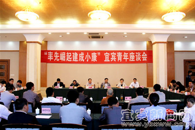 5月3日上午,共青团宜宾市委、宜宾市青年联合会在宜宾市委党校举办“投身率先崛起,奉献建成小康”宜宾青年座谈会。座谈会上,青年代表们围绕“投身率先崛起,凝聚青年共识;奉献建成小康,青年创新创业”的主题,从宜宾建设“国际生态山水园林城市”的形象定位与构建“辐射吸纳川滇黔的区域中心城市”功能定位,探讨广大宜宾青年如何将思想和行动凝聚到加快实现率先崛起建成小康的奋斗目标上;围绕“三个中心、六大基地”的产业定位,探讨广大宜宾青年如何在物流商贸、金融和交通枢纽“三个中心”构建中创新创效,如何在名优白酒、综合能源等“六大基地”打造中创业成长;围绕推进“五大战略”,探讨广大宜宾青年如何为实施和谐发展战略营造环境,争当全域开放和环境兴市战略的先行者。