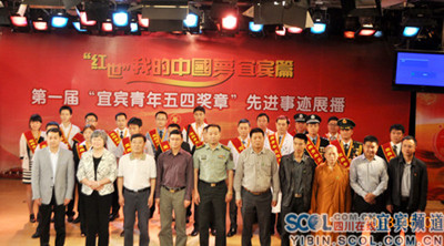 随后,“红世”杯宜宾市第一届“宜宾青年五四青年奖章”评选活动颁奖典礼在宜宾电视台演播厅隆重举行,市委常委、市总工会主席、市青联名誉主席王剑明开场致辞,王剑明主席说到此次评选活动为进一步发挥先进青年典型的示范和带动作用,引导激励宜宾青年全面贯彻落实党的十八大、省第十次党代会精神。此次评选活动经过严格的申报、初选、候选人展示、评审、公示等几个阶段的层层选拔,宜宾市各行各业共有10位优秀青年在评选中胜出,被授予宜宾青年的最高荣誉“宜宾青年五四奖章”称号。尚书勇老师以其先进事迹较强的社会影响力和对青年具有典型的示范引导作用在评选中脱颖而出,从而顺利获得该荣誉称号。