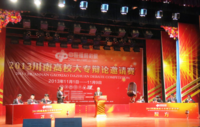 莘莘学子汇八方,尊尊教诲游四海。2013年11月1日我司受邀参加2013川南高校大专辩论邀请赛,此次辩论赛在宜宾学院举行,由共青团宜宾市委员会、宜宾广播电视台主办,中国福利彩票宜宾分中心联合主办,共青团宜宾学院委员会、宜宾合众传媒有限公司承办,农夫山泉股份有限公司协办。现场来自宜宾、泸州、自贡、内江五市八所高校的选手展开激烈角逐 ,正反双方围绕当代社会合作与竞争谁重要、代沟的主要责任在父母还是子女、顺境和逆境哪个更出人才等问题展开激烈辩论。我司监事长周城波、人力行政中心副经理董丽代表出席。监事长周成波表示:再不学习我们就淘汰了。当代社会,知识是无穷的财富,这些精彩的辩论赛让我们再次体会到—学无止境。