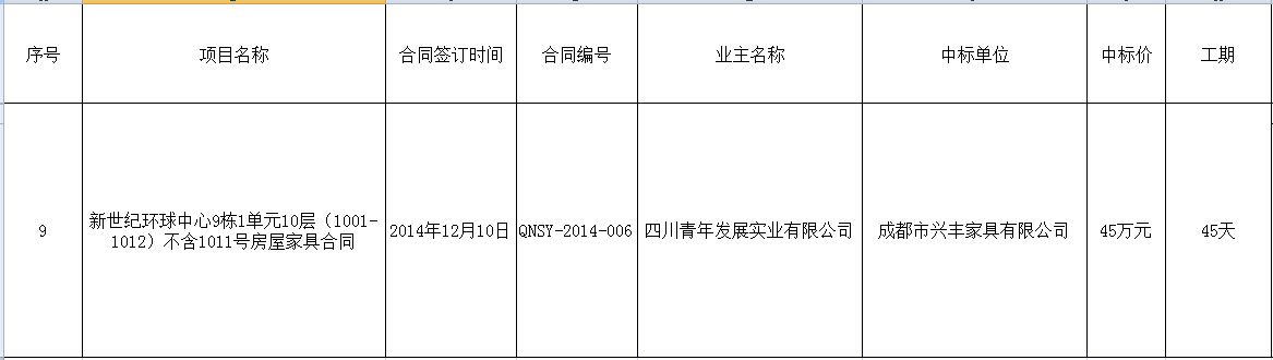 新世纪环球中心9栋1单元10层(1001-1012)不含1011号房屋家具合同