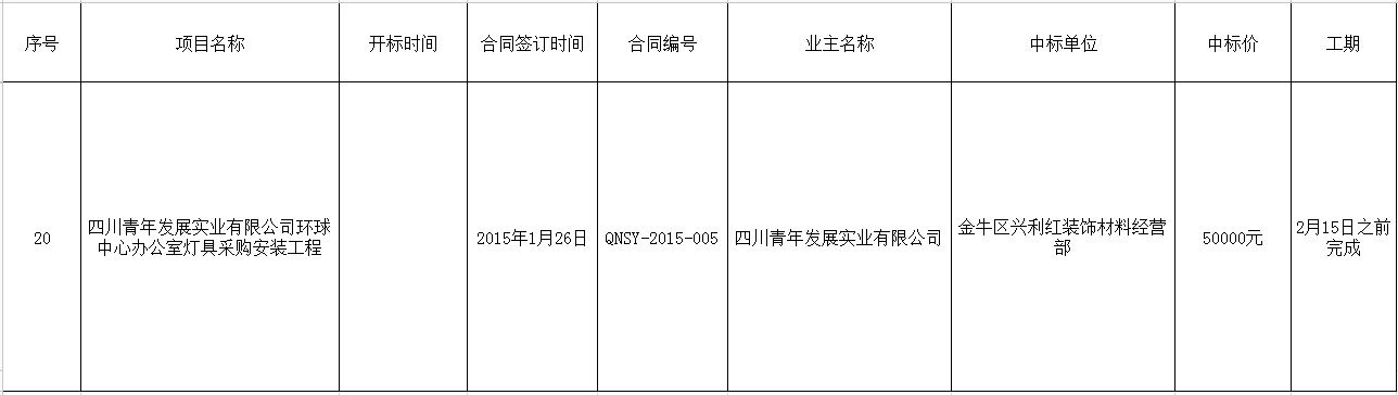 四川青年发展实业有限公司环球中心办公室灯具采购安装工程